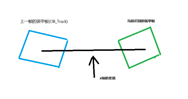 注意,这里不要被混淆了,这里有两个概念,一个是跟踪装甲板(OB_Track[tracking_id]),一个是当前装甲板(enemy_armor),跟踪装甲板是永远落后当前装甲板一帧的,所以,如果在陀螺过程中,出现了装甲板的跳变,这个时候假设当前装甲板从左侧变到右侧,这个时候,跟踪装甲板还是在左侧的,通过两个装甲板的一个x轴距离变化,我们可以判断出跳变,这个时候我们在里面去计算角速度